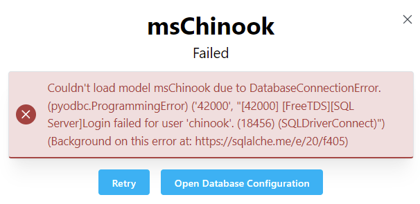 If an error is encountered while connecting to a database, the Status field will change to Failed.