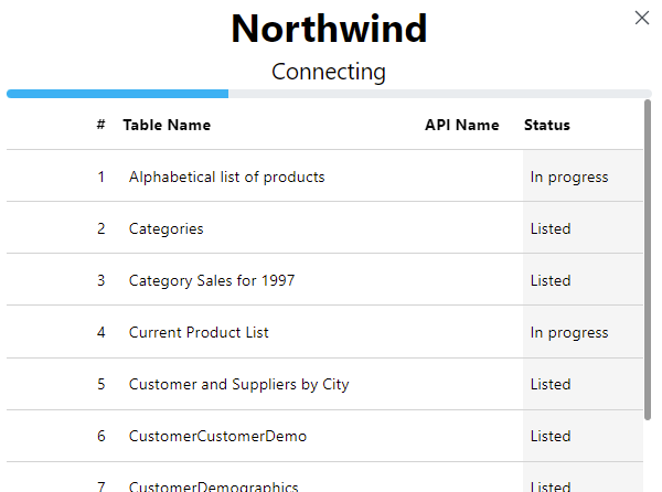 The reflection process may take some time, depending on the size and complexity of the database schema. You can see the reflection status by clicking the List icon in the Action column.