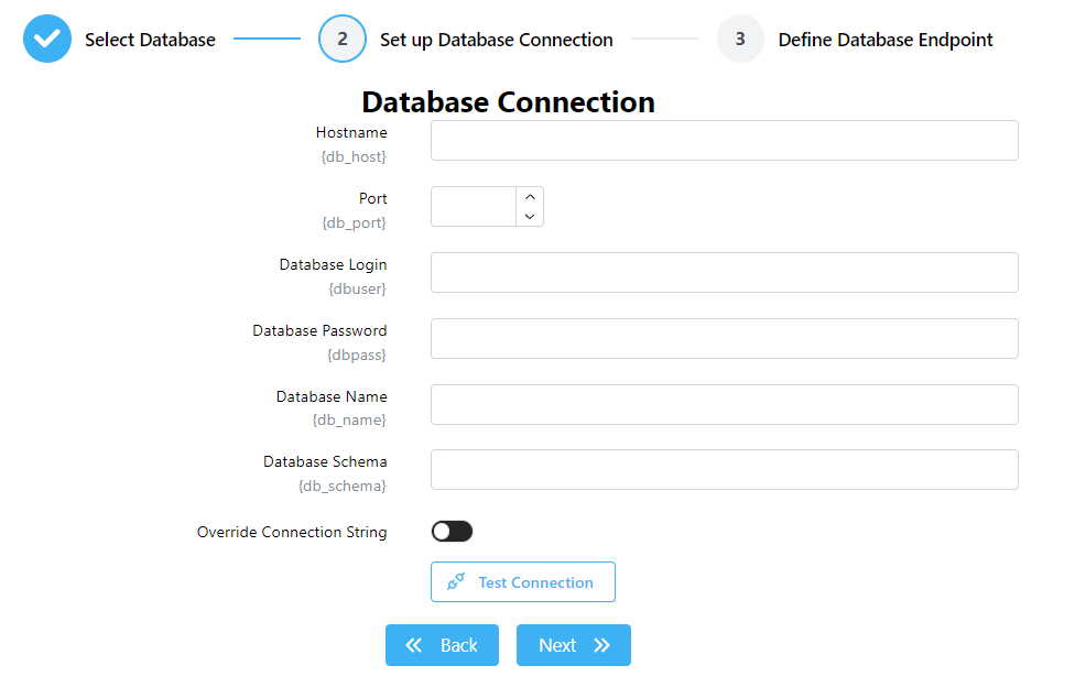 Some of these fields can differ based on the database type. See the Database Connectors page for installation steps for each database type.