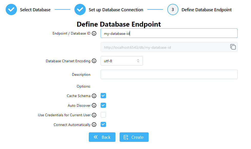 Click Create to save the new database configuration and start connecting to the database. You will be taken back to the Database Connections list.