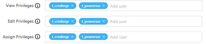 Edit Privileges - grant users access to view, edit or delete these credentials