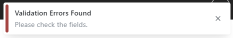If any errors are encountered, a message will appear in the top right corner of the screen.