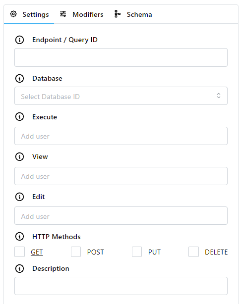 The Settings tab in the pane on the left hand side contains the fields for configuring the query. You can hover on the tooltip icons to learn more about each field's purpose and configuration tips.