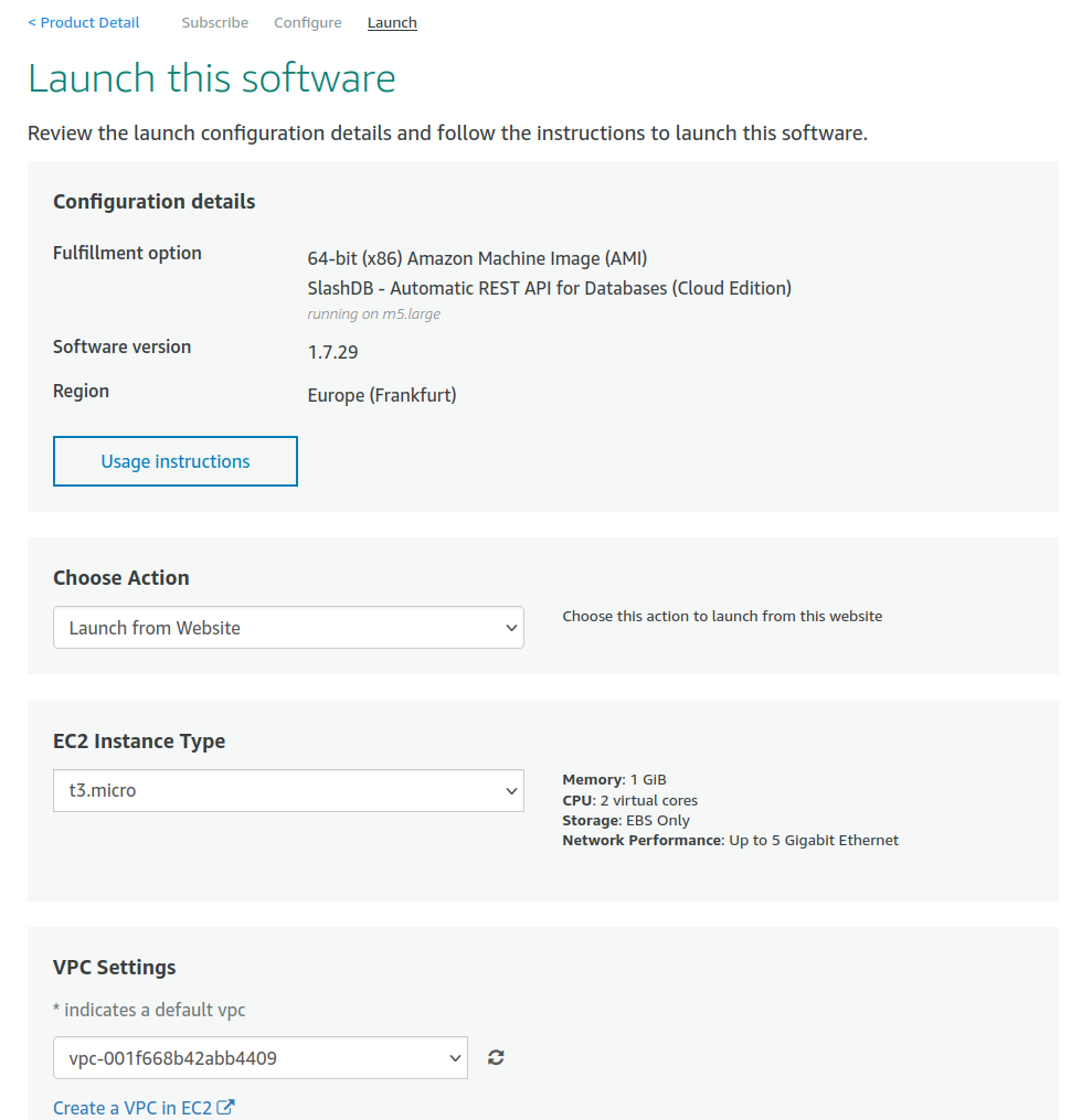 Amazon Web Services provides various cloud services (e.g. computing and hosting). SlashDB is available as an AMI on the AWS Marketplace, allowing for quick and easy deployment.