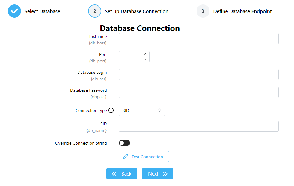 - Connection Type - dropdown to select Service Name or SID