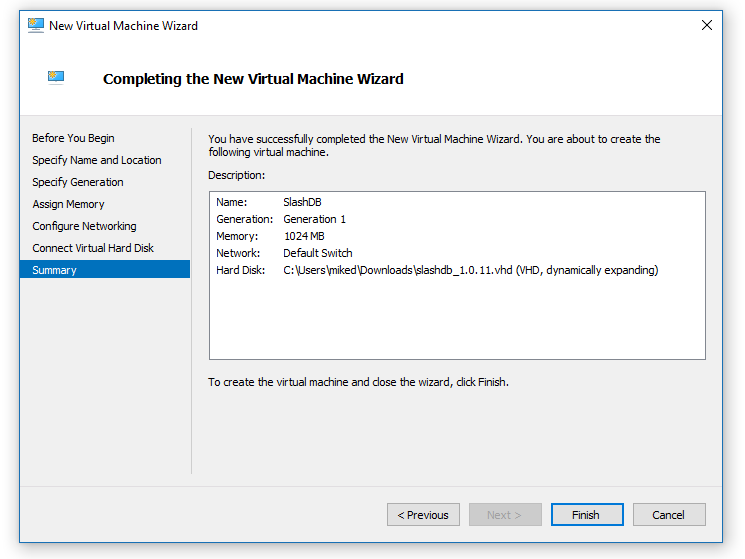 SlashDB can be run in a Hyper-V virtual machine. It is shipped fully configured as a VHD disk that can be attached to the virtual machine.