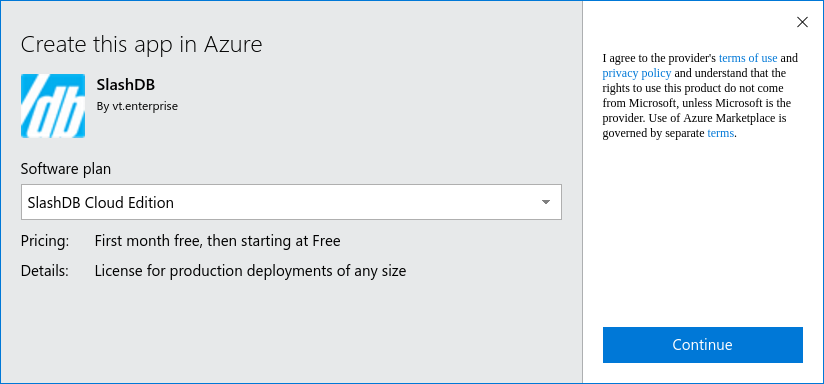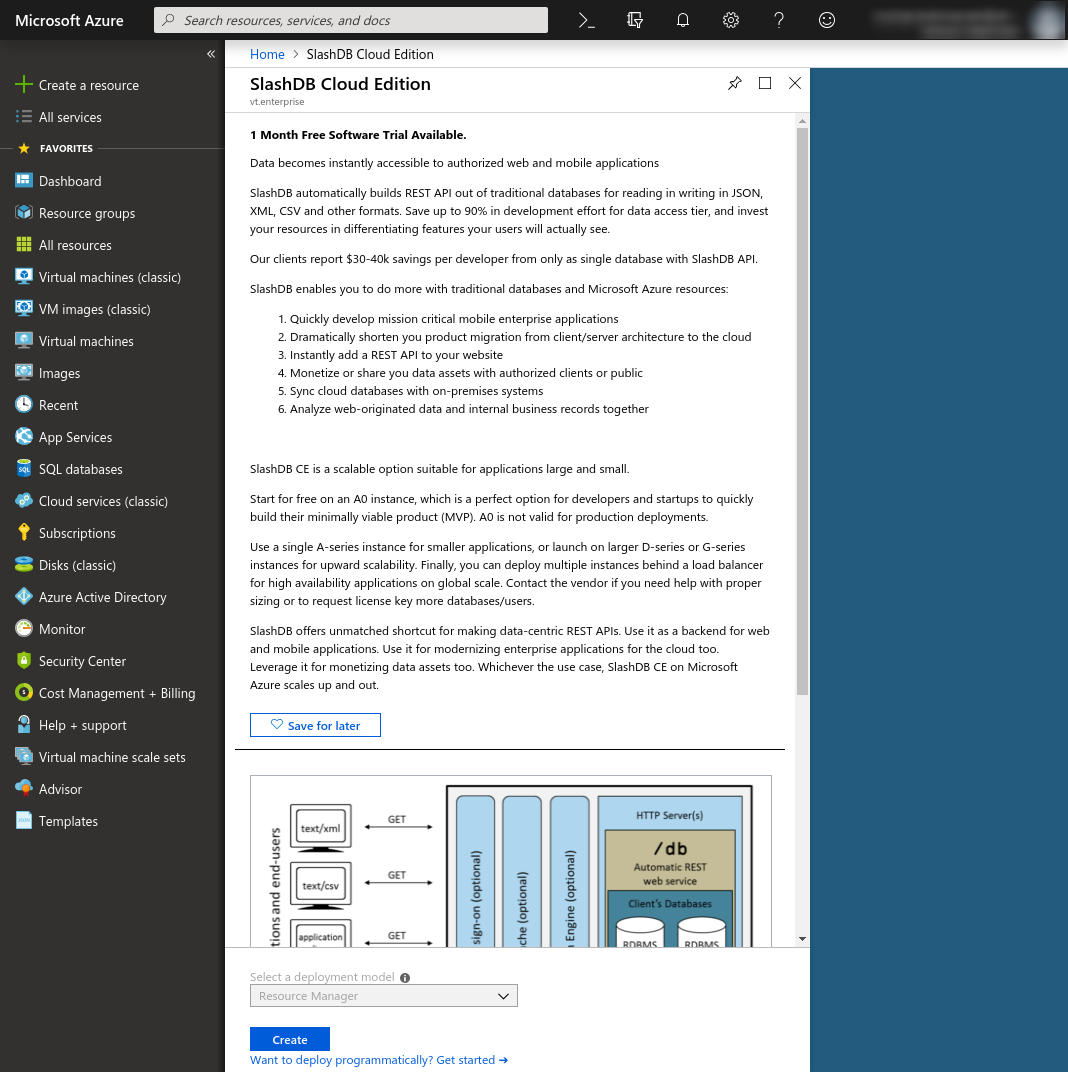Azure is a Cloud platform developed and maintained by Microsoft. It enables customers a quick and effortless deployment of applications. SlashDB, being one of those applications, is available on the Microsoft Azure Marketplace, giving users the full potential of Azure.