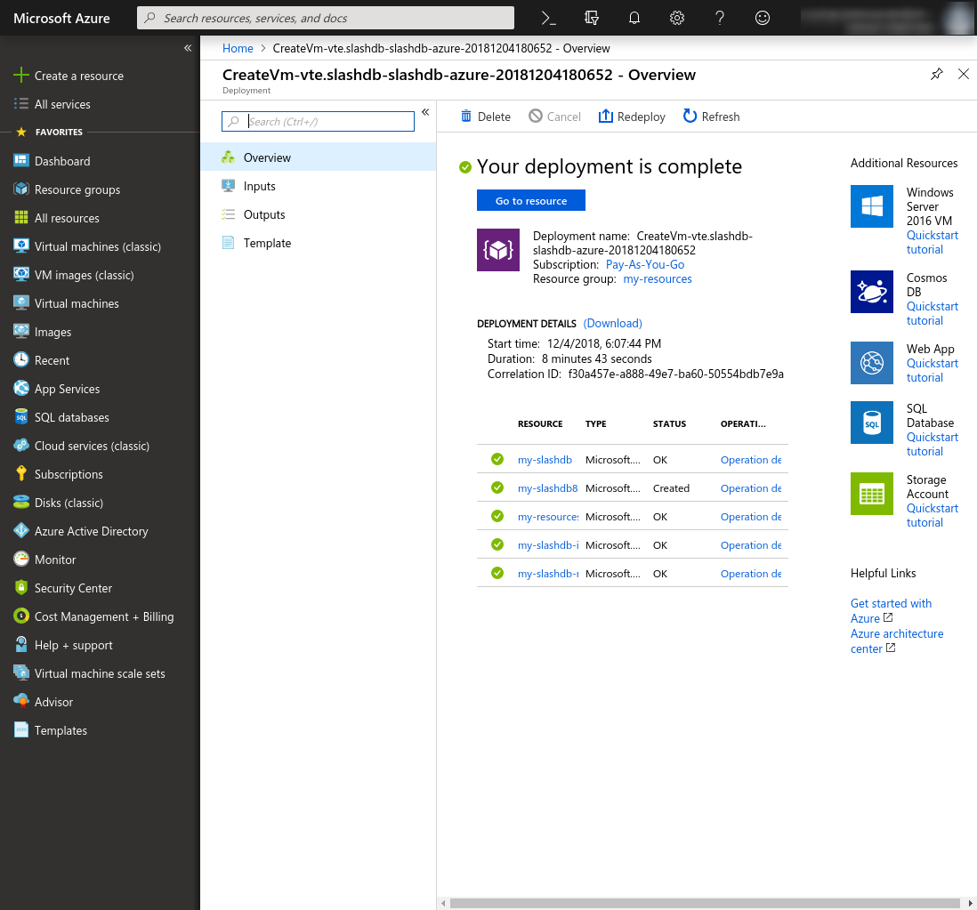 7. Navigate to the details of the VM using the Go to resource link