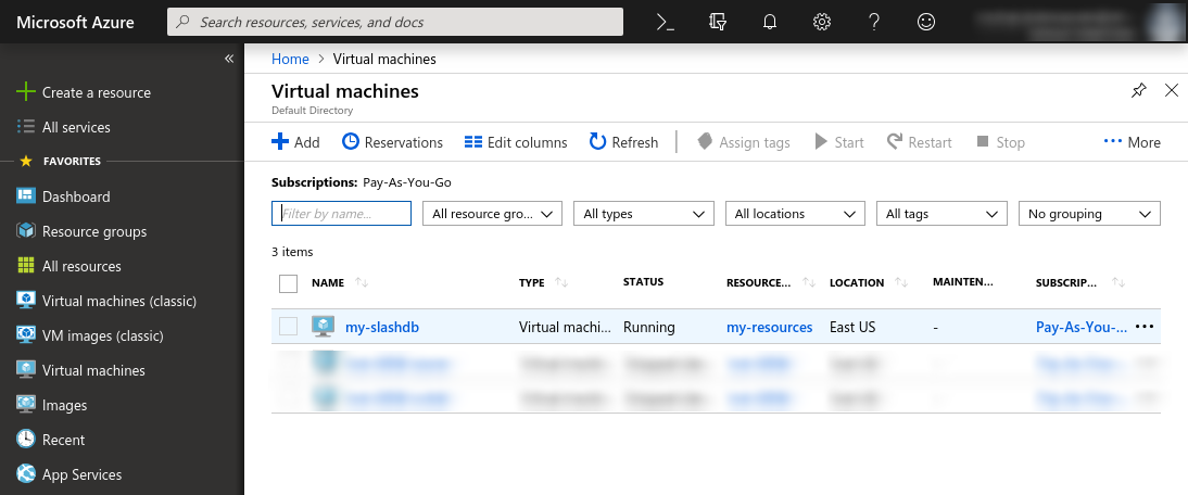 or through the list of your virtual machines