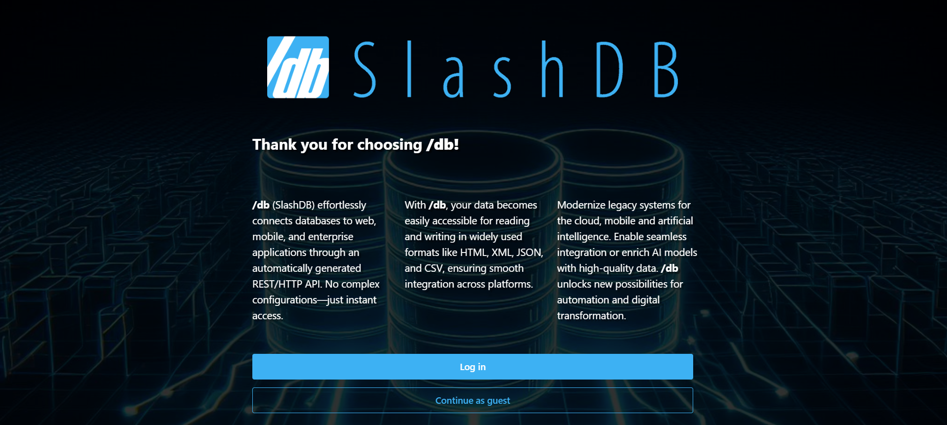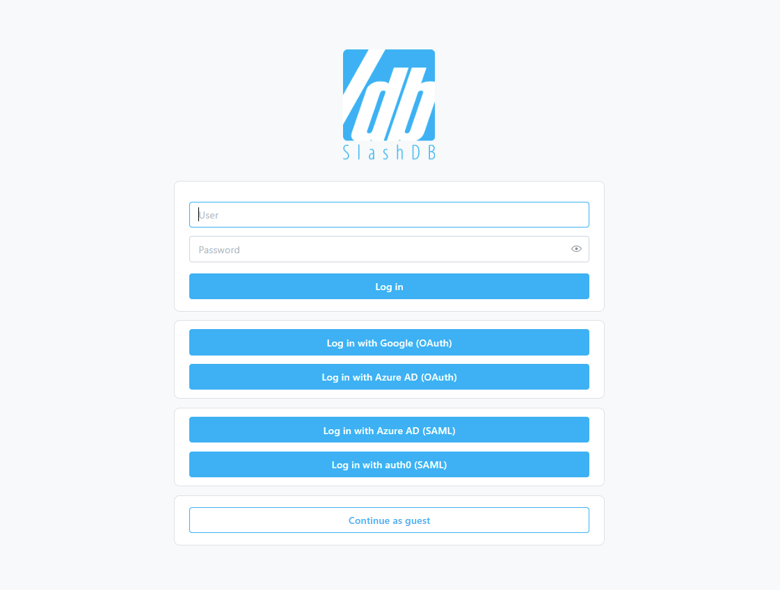 When you navigate to the SlashDB homepage, you will the screen below: