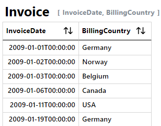 /db/Chinook/Invoice/InvoiceDate,BillingCountry.html - get InvoiceDate and BillingCountry columns in Invoice