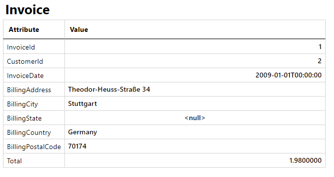 /Invoice/InvoiceId/1.html - get Invoice record with primary key InvoiceId = 1