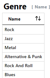 /db/Chinook/Genre/Name.html - get Name column in Genre records