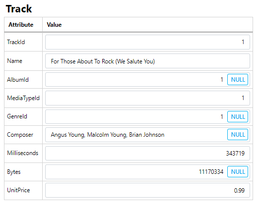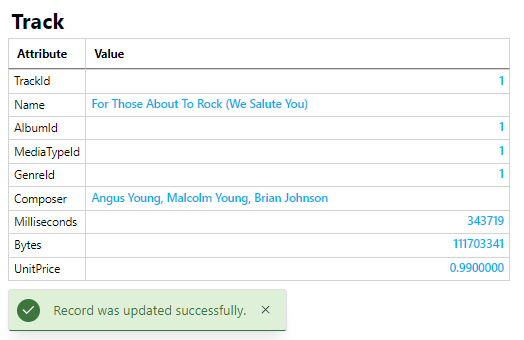 Using the Track/TrackId/1 record in the demo Chinook database as a guide: